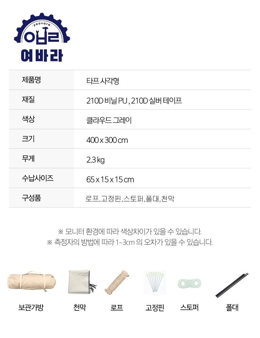 타프 캠핑 그늘막 옥상 펜션 사각 가족여행 5-8인용 렉타 방수 여바라 차박